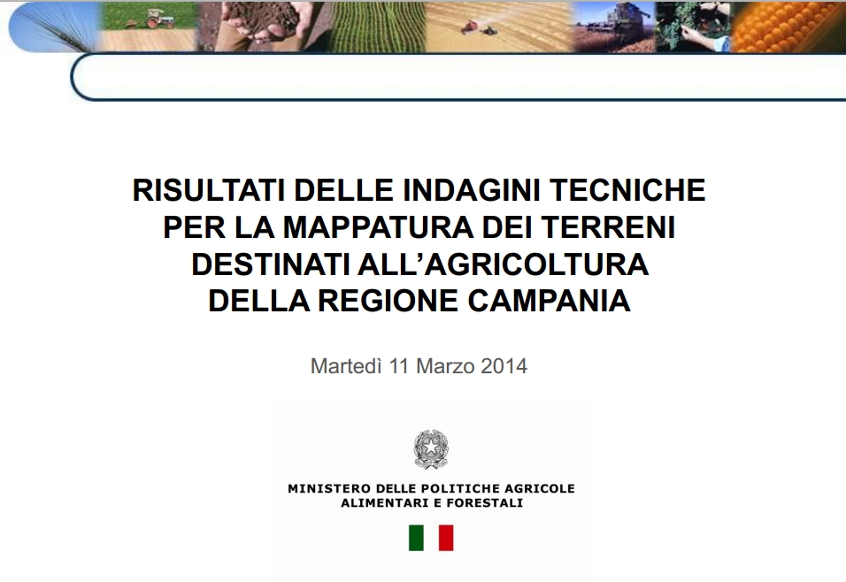 Si allega il documento di " Presentazione dei risultati delle indagini tecniche per la mappatura dei terreni destinati all'agricoltura della Regione Campania".