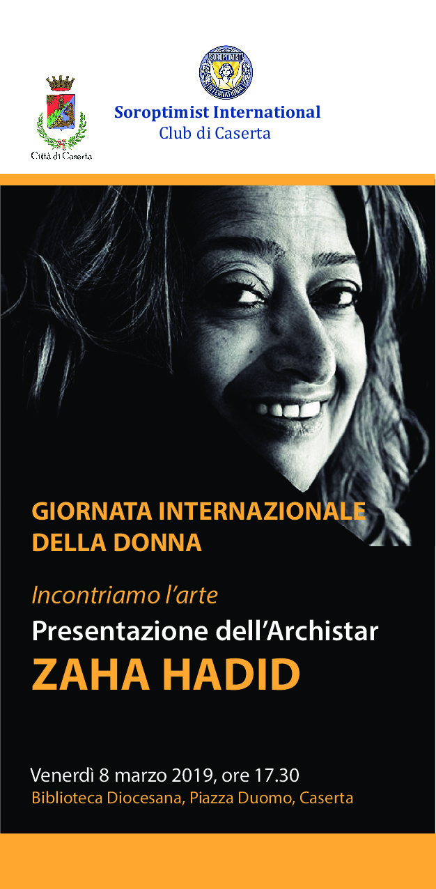 8 marzo a Caserta: in occasione della Giornata Internazionale della Donna, Soroptimist Caserta racconta l'arte di Zaha Hadid, architetta di fama internazionale il cui nome è divenuto noto anche in Campania per il segno che i suoi progetti hanno lasciato sul territorio.