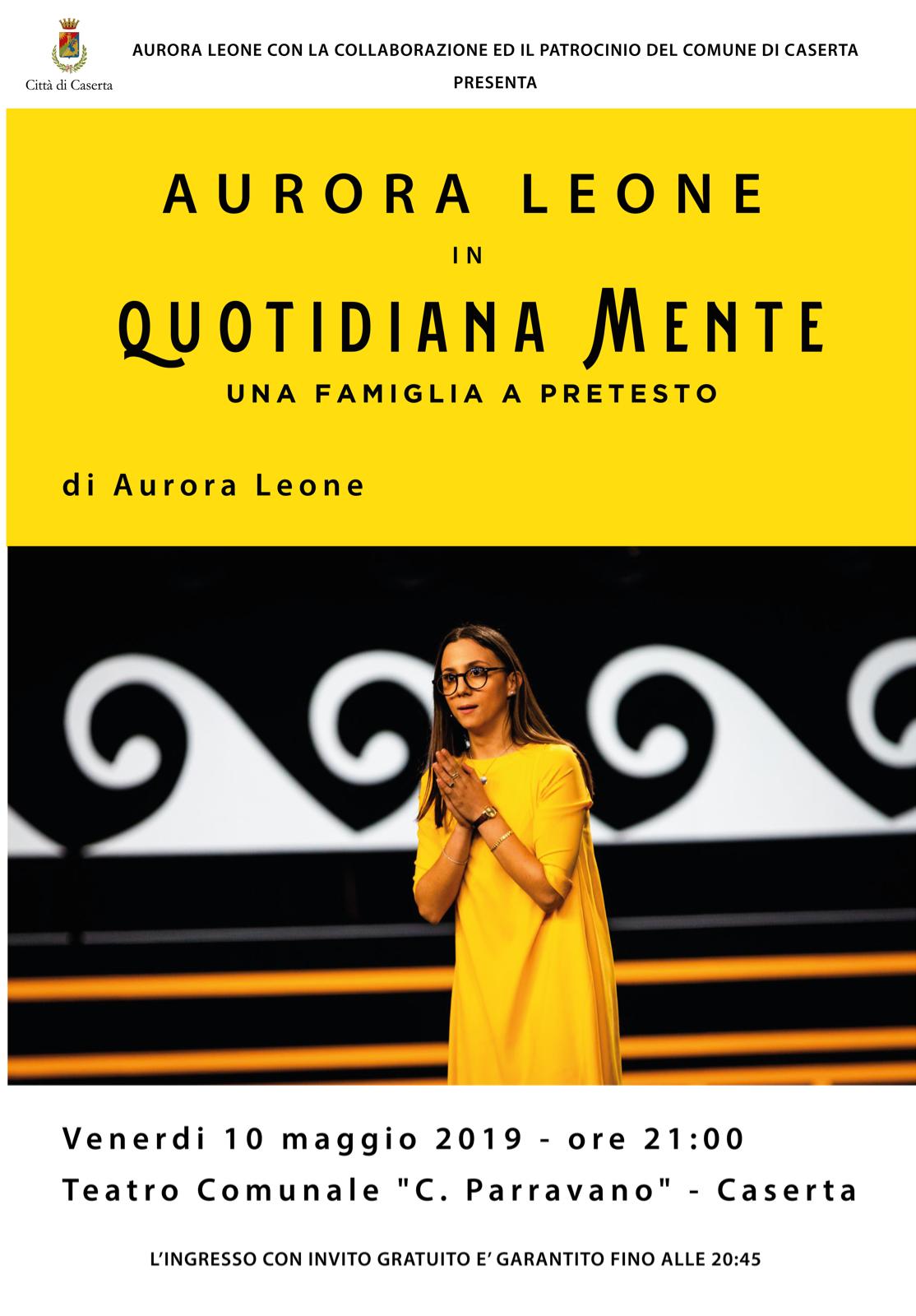 Venerdì 10 maggio, con inizio alle ore 21.00, il Teatro Comunale Parravano di via Mazzini ospiterà Aurora Leone, finalista Italia's Got Talent 2019, nello spettacolo "Quotidiana Mente - Una famiglia a pretesto", patrocinato dal Comune.