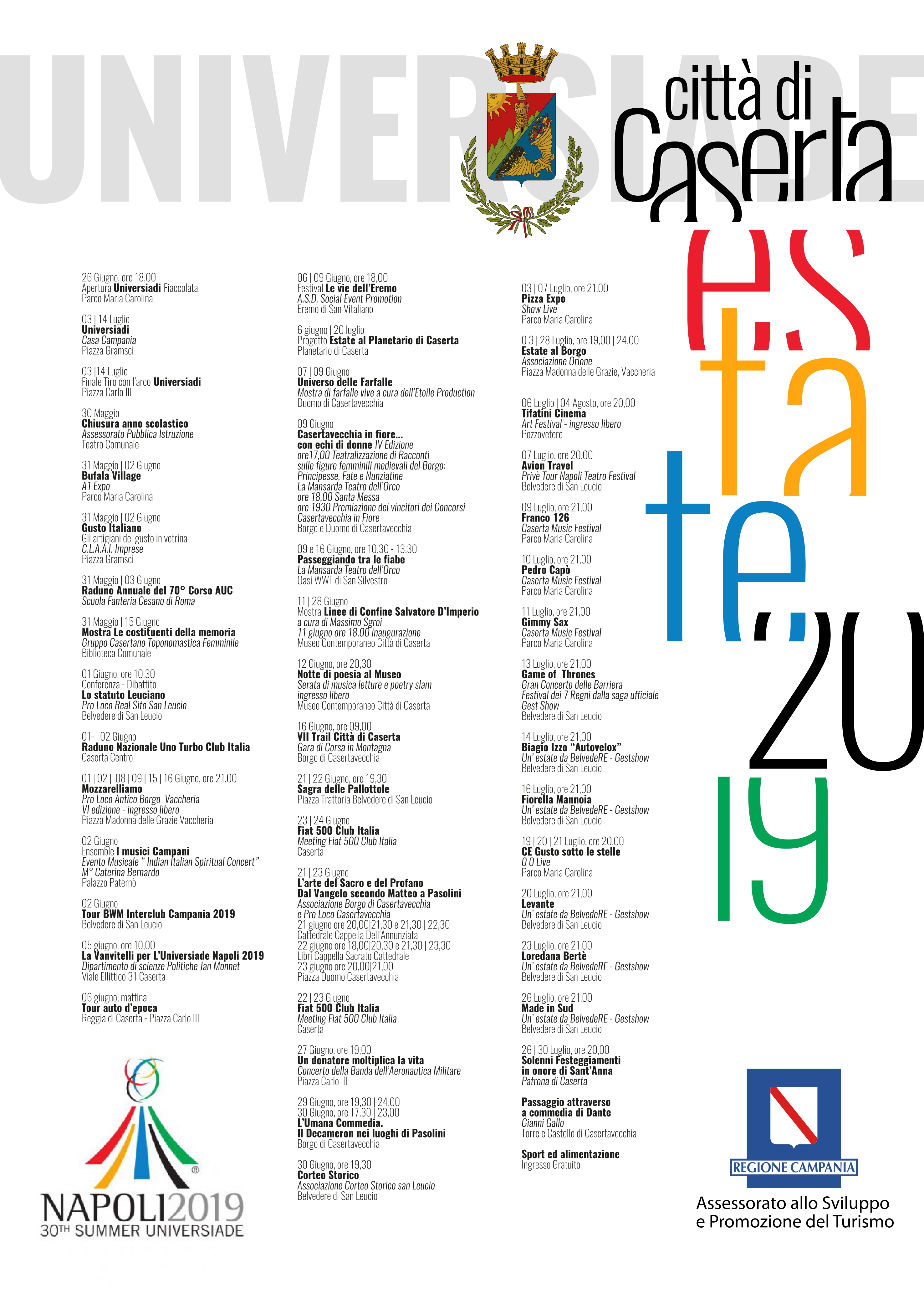 In allegato, il programma degli eventi collaterali dell'Universiade 2019.
