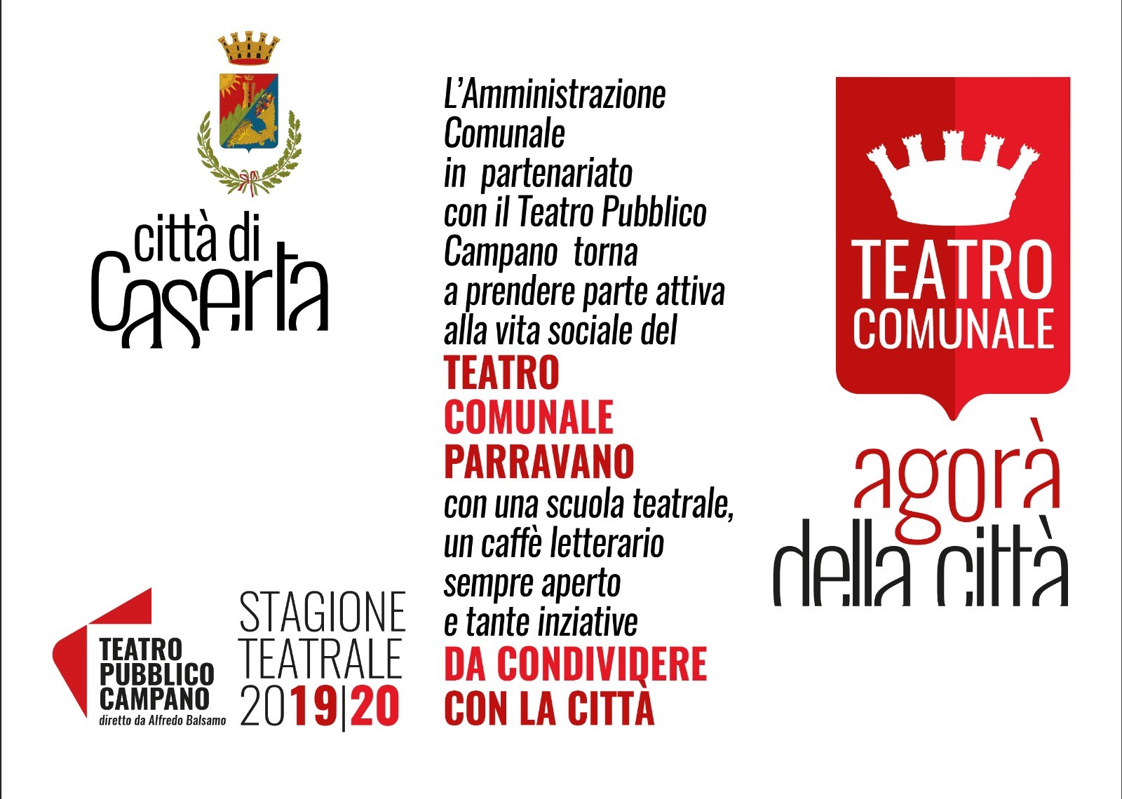 In allegato, il cartellone della nuova stagione teatrale e le altre novità presentate in Comune dal sindaco Carlo Marino e dagli assessori Emiliano Casale e Tiziana Petrillo.