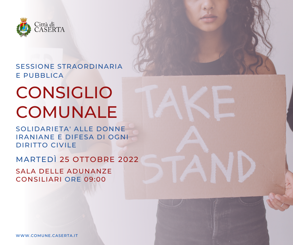 Domani, Martedì 25 Ottobre 2022, alle ore 09:00 si terrà una sessione straordinaria e pubblica del Consiglio Comunale della Città di Caserta sul tema dei diritti civili.