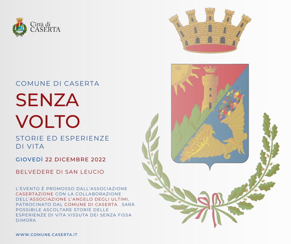 I senza fissa dimora si raccontano e lo fanno nella splendida cornice del Belvedere di San Leucio. Sono queste le premesse di “Senza volto”, l’evento che si terrà giovedì 22 dicembre dalle 16,30 alle 19,30 presso il Complesso Monumentale simbolo dell’utopia leuciana e patrimonio dell’umanità Unesco.