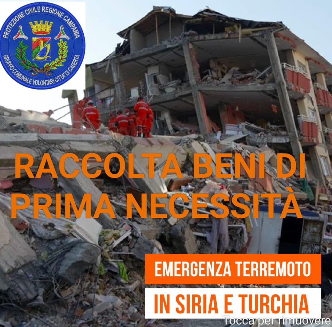 Il Gruppo Comunale della Protezione Civile di Caserta lancia la campagna di raccolta di beni primari per Emergenza Terremoto in Turchia e Siria.