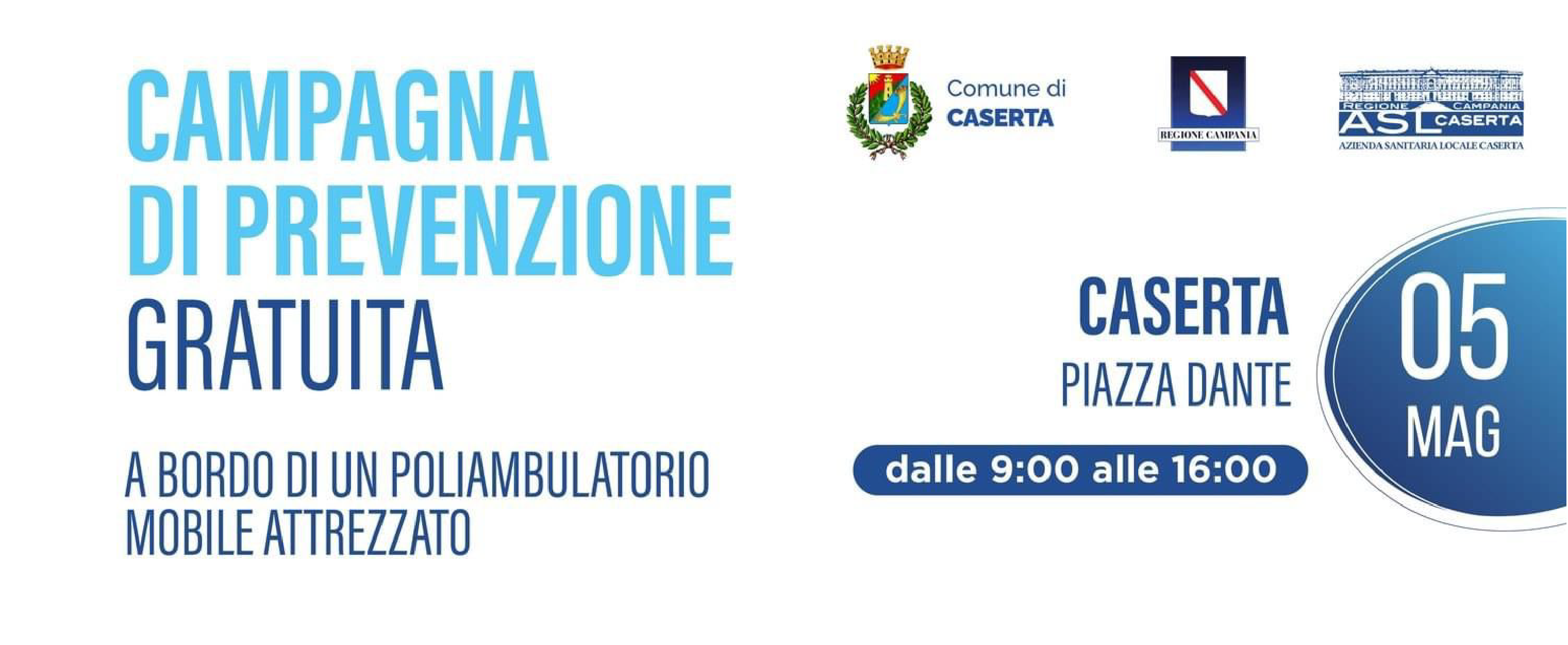 Un nuovo appuntamento con la prevenzione promosso da ASL Caserta, Comune di Caserta e Regione Campania. Tutti i cittadini casertani sono invitati ad aderire all'iniziativa che si terrà venerdì 5 maggio in Piazza Dante dalle 9 alle 16.
