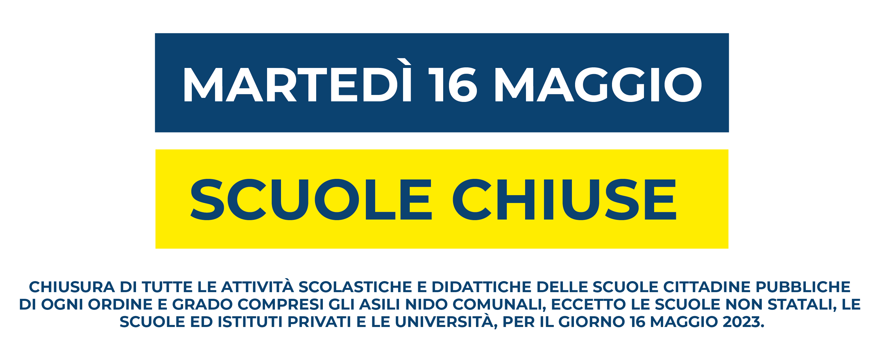 Il Sindaco di Caserta ha emesso un'Ordinanza di CHIUSURA di tutte le attività scolastiche e didattiche delle scuole cittadine pubbliche di ogni ordine e grado compresi gli asili nido comunali, eccetto le scuole non statali, le scuole ed istituti privati e le università, per il giorno 16 maggio 2023.