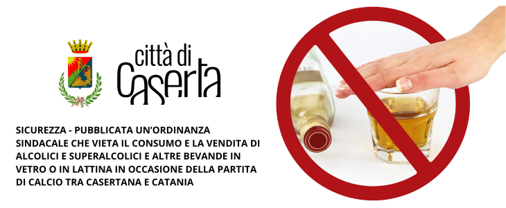 Il Sindaco di Caserta, Carlo Marino, in occasione della partita di calcio tra Casertana e Catania, che si disputerà allo stadio “Pinto” alle ore 14 di domani, domenica 1° ottobre, ha firmato un’ordinanza con la quale viene stabilito il divieto assoluto di consumare e vendere bevande alcoliche e/o superalcoliche, di qualsiasi gradazione ed in qualsiasi contenitore, e altre bevande in vetro o in lattina, dalle quattro ore antecedenti l’inizio della partita e fino all’ora successiva la fine della partita all’interno dello Stadio “Pinto”, e nel raggio di 500 metri dall’impianto sportivo e, in particolare, a titolo indicativo e non esaustivo, nelle seguenti strade: Viale Medaglie d’Oro, Via San Carlo, Viale Beneduce, Piazza Andolfato, Via Unità Italiana, Via Fratelli Rosselli, Via Laviano, Via Gemito, Via S. Augusto, Via G.M. Bosco, Via Ruggiero, Piazza Cattaneo, Via Falcone, Via Borsellino, Viale Cappiello, Via Ruta, Piazza Pitesti, Via Marchesiello, Viale Michelangelo, Viale dei Bersaglieri, Via Gallicola, Via Einaudi, Via Roma, Corso Trieste, Via Settembrini, Via De Gasperi, Via Buccini, Via De Franciscis, Via Caduti sul Lavoro e relative traverse, Piazza Dalla Chiesa. Il provvedimento è stato adottato per prevenire la possibilità che tali contenitori vengano utilizzati come oggetti contundenti, potendo diventare strumenti atti ad offendere.
