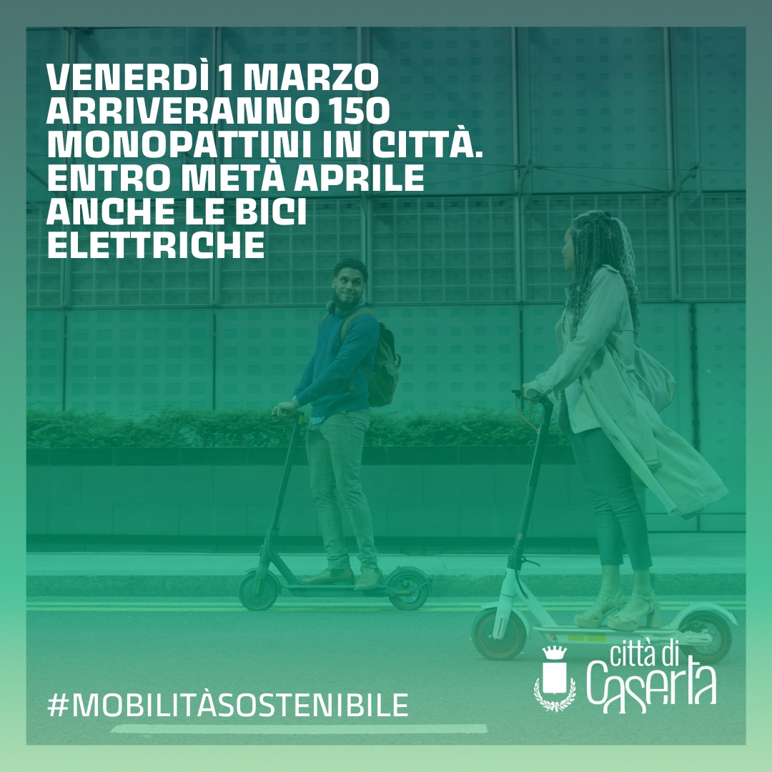 MOBILITÀ SOSTENIBILE: VENERDÌ 1 MARZO ARRIVERANNO 150 MONOPATTINI IN CITTÀ. ENTRO METÀ APRILE A DISPOSIZIONE ANCHE LE BICI ELETTRICHE
