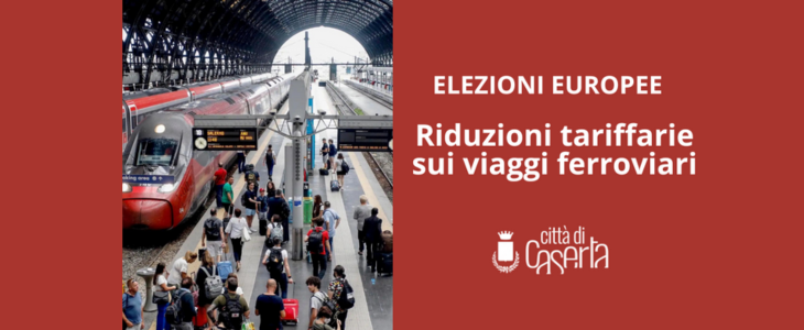 Il Comune di Caserta informa i cittadini che, in occasione delle Elezioni Europee che si terranno sabato 8 e domenica 9 giugno 2024, per agevolare gli spostamenti degli elettori, la societą Italo-Nuovo Trasporto Viaggiatori S.p.A. offre significative riduzioni tariffarie sui viaggi ferroviari.