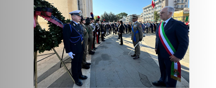 Questa mattina, presso il Monumento ai Caduti, si č tenuta la tradizionale cerimonia per la Giornata dell’Unitā nazionale e delle Forze armate. Il Sindaco di Caserta, Carlo Marino, il Prefetto di Caserta, Lucia Volpe, il Vicepresidente della Provincia, Marcello De Rosa, e il comandante della Brigata Garibaldi, Generale Mario Ciorra, hanno deposto quattro corone in onore dei Caduti.