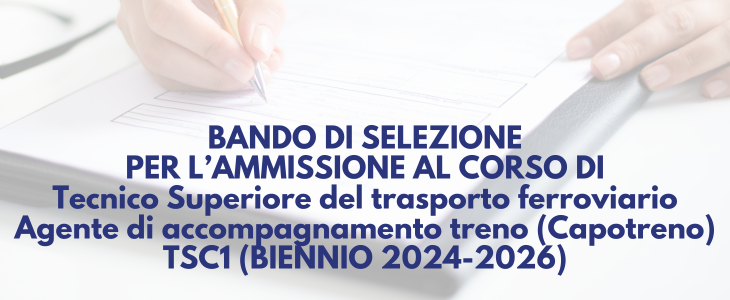 La Fondazione ITS ACADEMY TEC MOS, Tecnologie e sicurezza per la mobilità sostenibile, seleziona allievi per il corso di formazione per il conseguimento del diploma di “Tecnico Superiore per il traporto ferroviario con la qualifica di agente di accompagnamento treno.