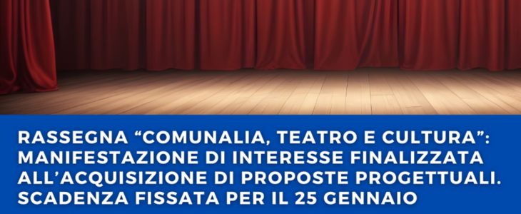 RASSEGNA "COMUNALIA, TEATRO E CULTURA": MANIFESTAZIONE DI INTERESSE FINALIZZATA ALL'ACQUISIZIONE DI PROPOSTE PROGETTUALI. SCADENZA FISSATA PER IL 25 GENNAIO